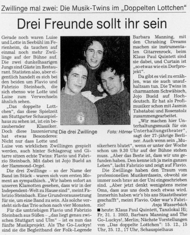 “Das Doppelte Lottchen” von Erich Kästner Produktion des Schauspiel Staatstheater Stuttgart Regie: Henning Bock Text und Musik: Deborah Wargon Arrangements: Deborah Wargon und Die Drei Zwillinge